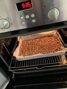 öncelikle fıstıkları 150 derece fırında 5 dakikada bir karıştırarak 15-20 dakika kadar kavuruyoruz ( tadına bakın mutlaka çiğ tad geliyorsa birkaç dakika daha kalsın fırında)